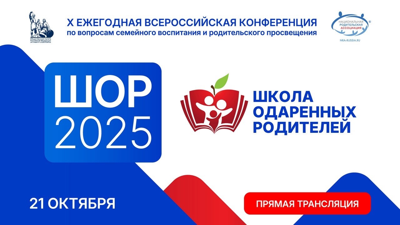 21 октября 2025 года в 11:00 Мск состоится X ежегодная Всероссийская конференция по вопросам семейного воспитания и родительского просвещения «Школа одарённых родителей».